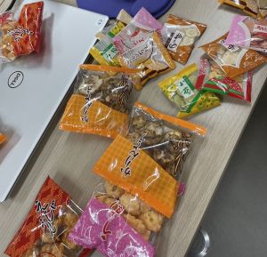 先日スタッフが「夏休み期間中は愛知県ぐらいしか行っていなくて・・・」と言いながらガサガサと大量の ”えびせん” を出してくれました。ありがとー