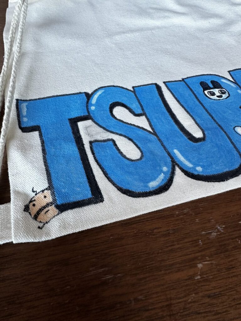 最近のJK界隈では、友達とお揃いのナップサックに自分の名前を描いてデコるというものが流行っているようです。