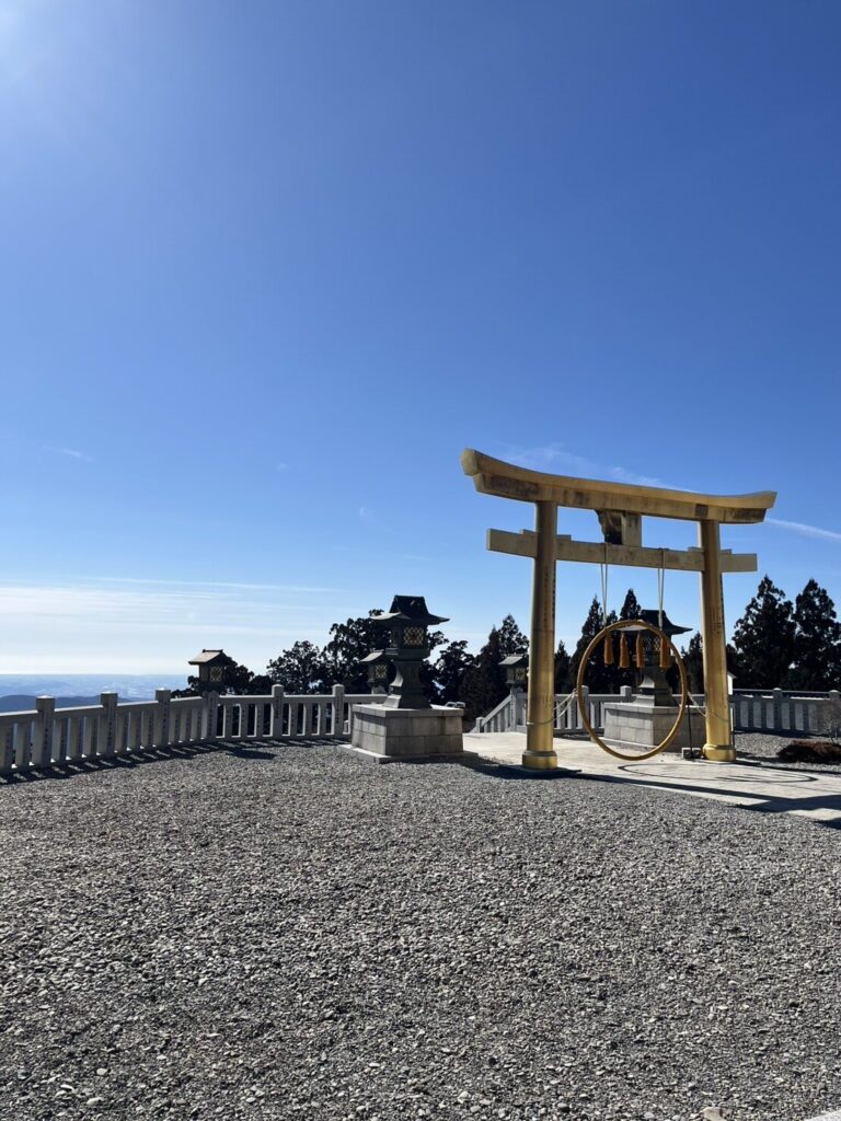 金色の鳥居は派手すぎることなく、山の景色に馴染んでいて、静かだけど前向きな空気。