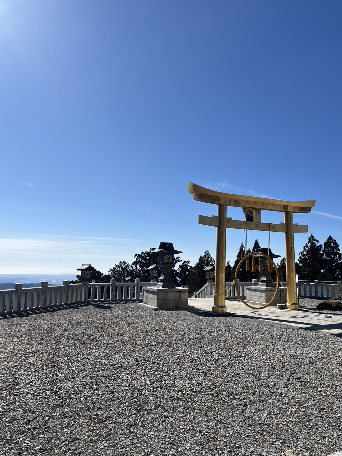 山道を抜けた先に現れたのは、周りに何もない山の上の鳥居。視界が一気に開けて、空が広くて、風が気持ちよくて、、、不快な寒さを感じず「来てよかったなあ」と自然に思える場所でした。