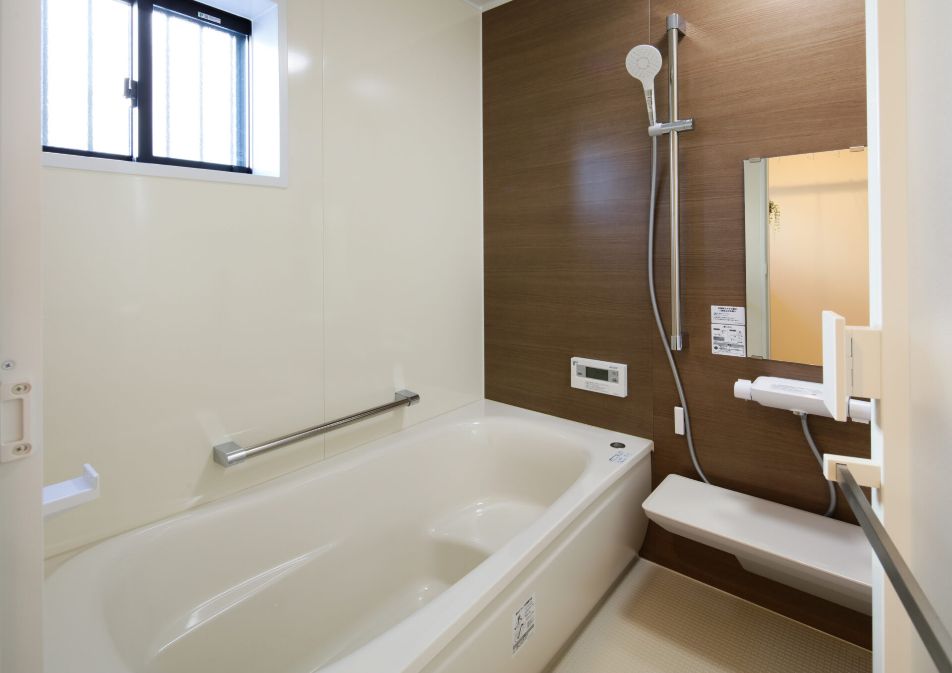 新しく設置したユニットバスに傷が有るか否かをチェックします。