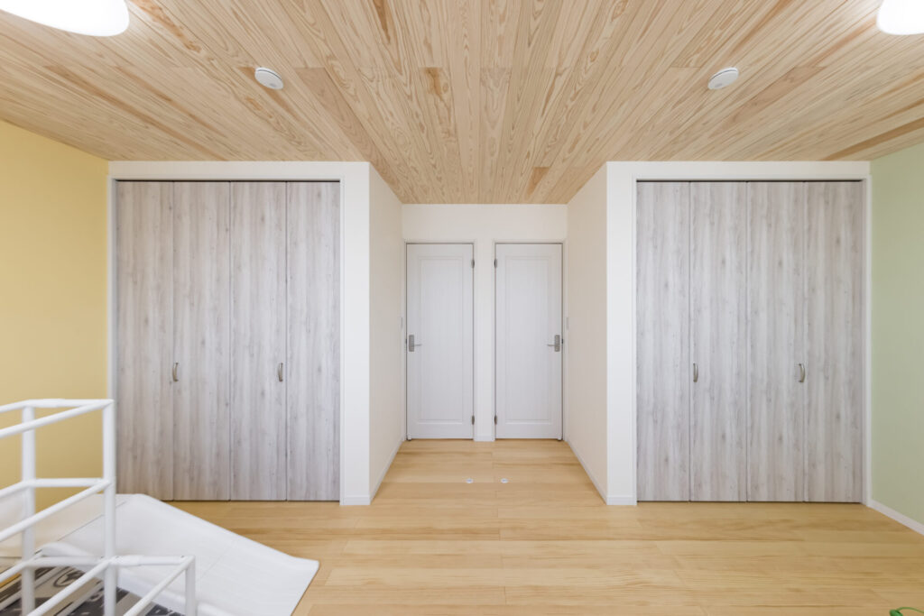 賛否両論ありますが、子供部屋は将来的に間仕切ることができるように建具を2つ設けることをおすすめします。
